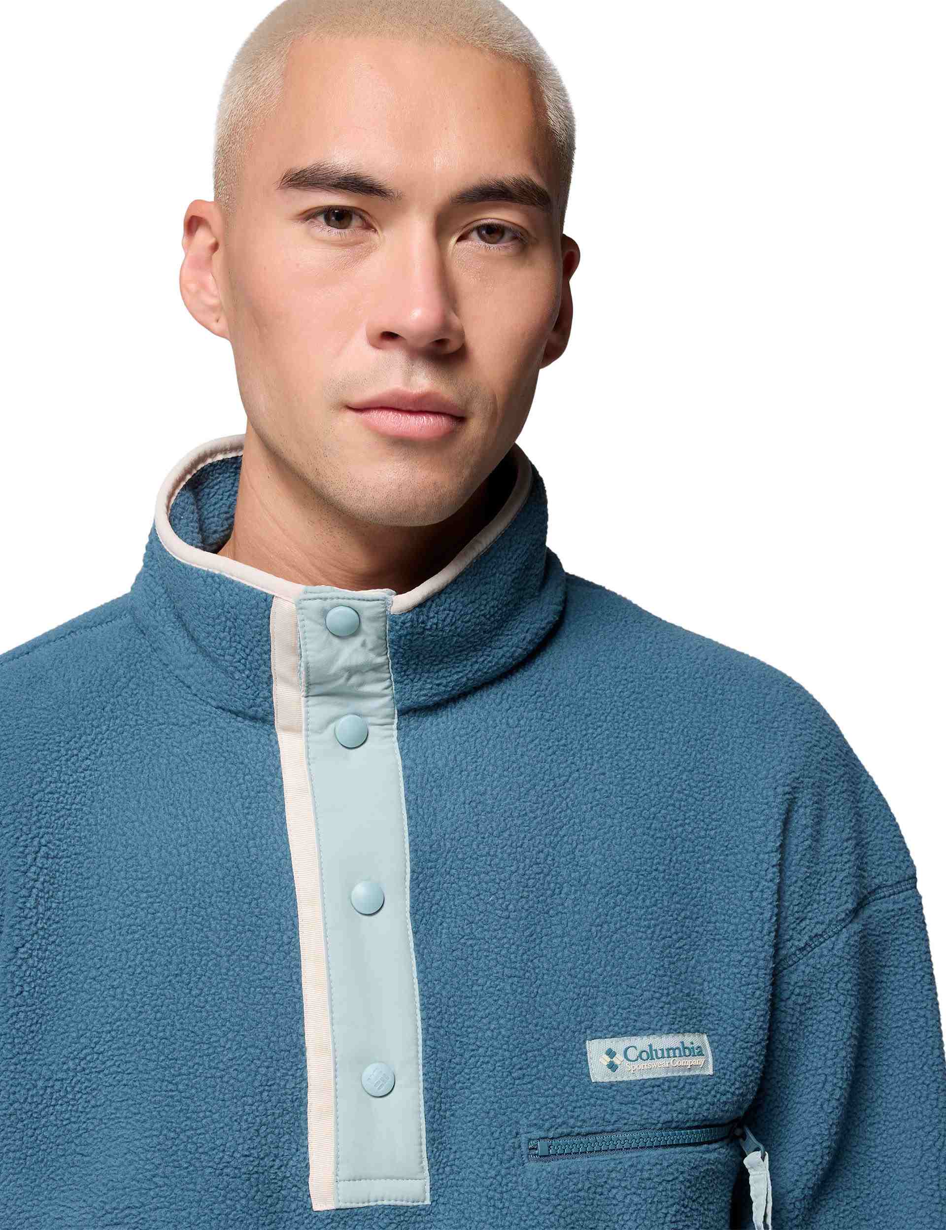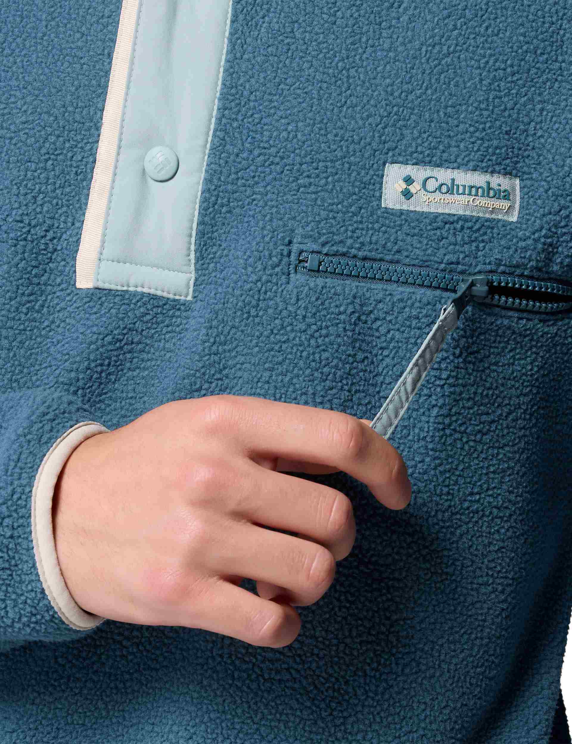 Stay cozy in retro-inspired style with the Helvetia™ II Half Snap Fleece from Columbia's Icons Collection. Featuring plush sherpa fleece construction, this versatile piece blends archive-inspired design with modern functionality for everyday adventures. The secure zippered chest pocket keeps essentials safe, while stretch binding at the collar, cuffs and hem provides a comfortable, finished feel.