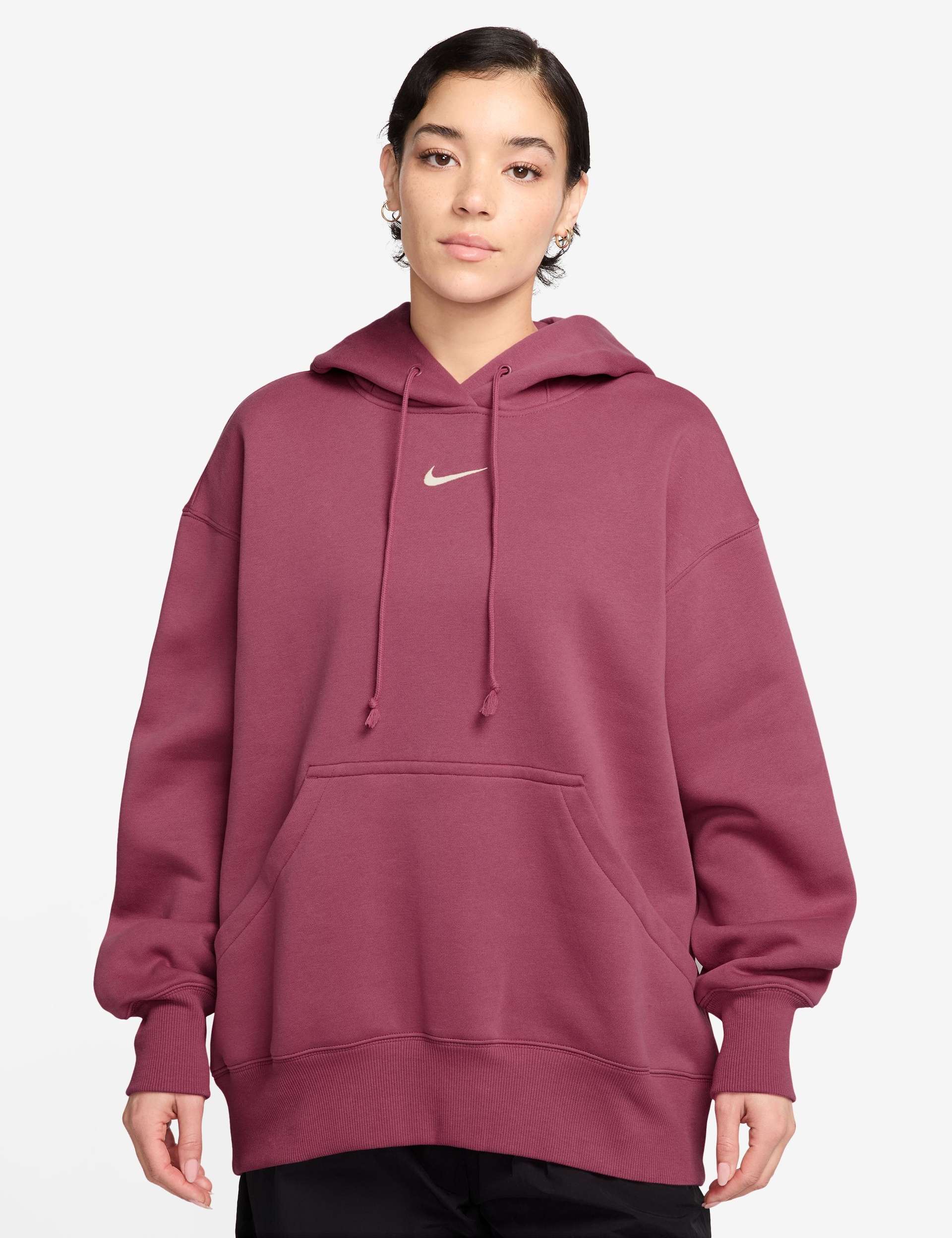 Lounge in luxury with the Sportswear Phoenix Fleece Oversized Pullover Hoodie, featuring midweight fleece and a drawcord hood for a cosy, structured fit. The oversized pocket and embroidered Swoosh logo add the perfect finish, while dropped shoulders and roomy sleeves ensure all-day ease. Perfect for off-duty relaxation or casual outings, it's designed to be effortlessly chic.