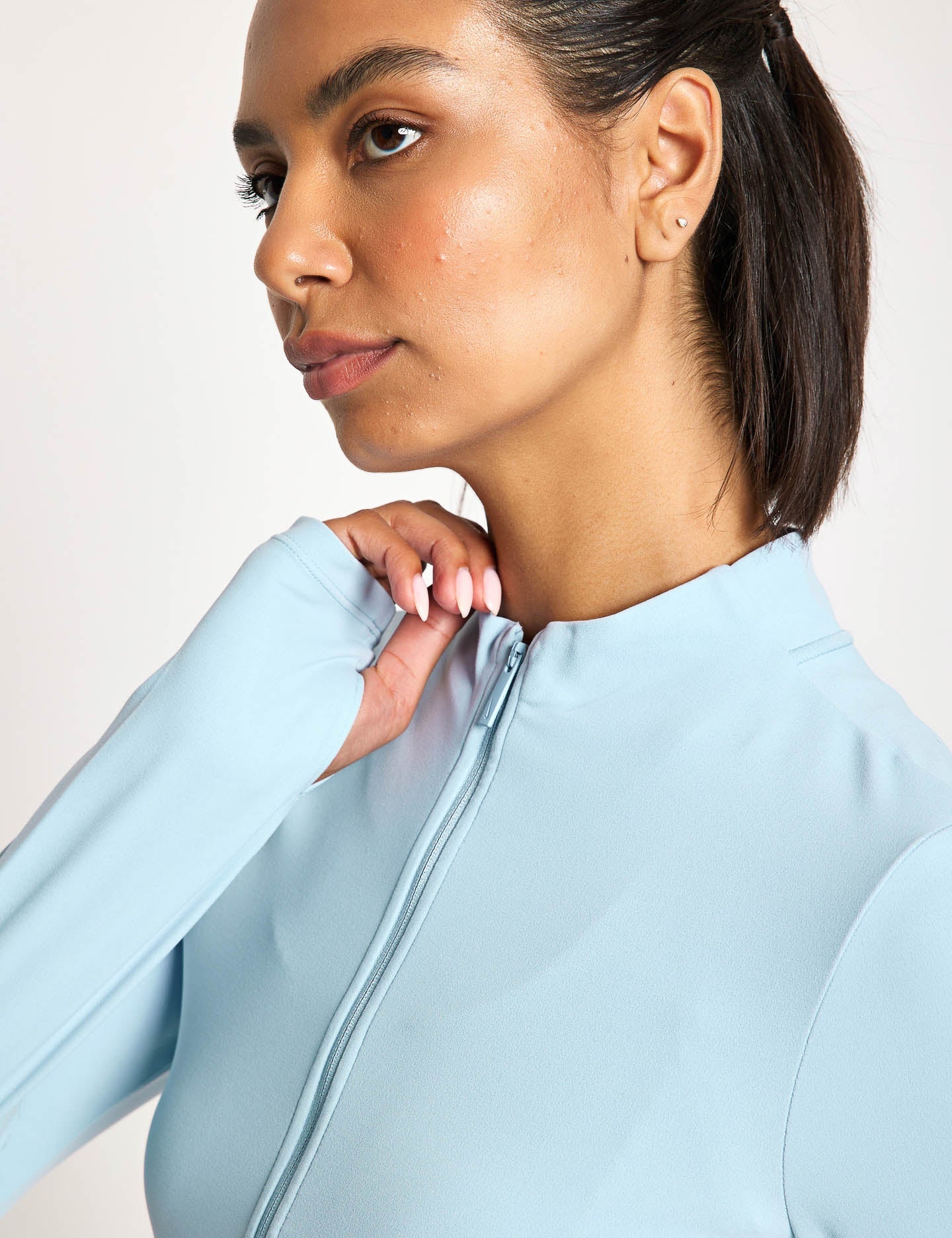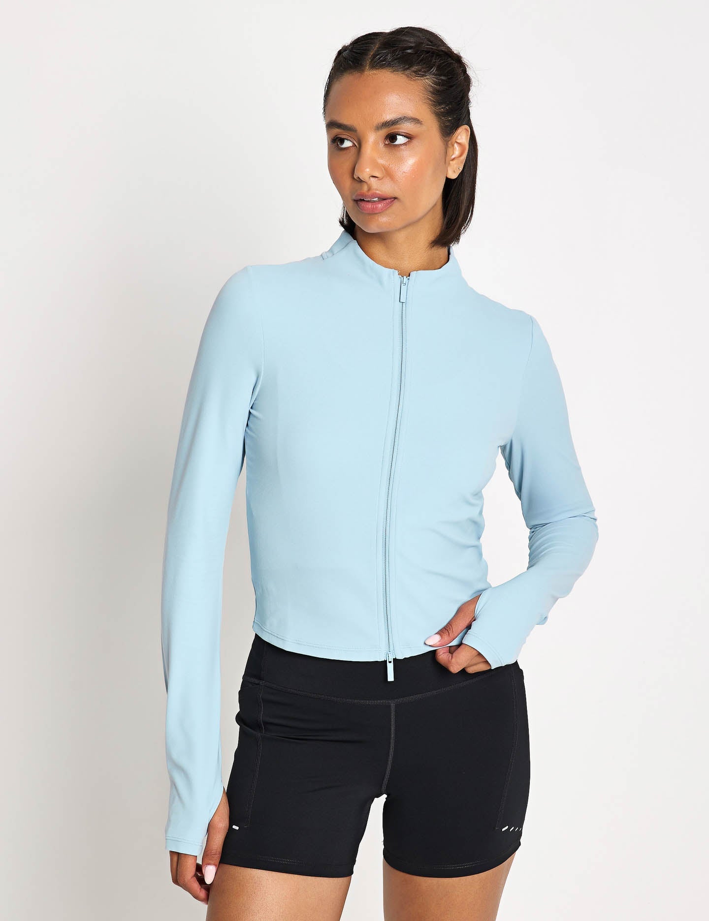 Cruise through yoga sessions with the Zenvy Dri-FIT Full-Zip Long-Sleeve Top, where InfinaSoft fabric and moisture-wicking Dri-FIT Technology keep you dry during every stretch. Its two-way zipper and thumbholes make layering a breeze, perfect for transitioning from a chilly studio to a warm savasana.